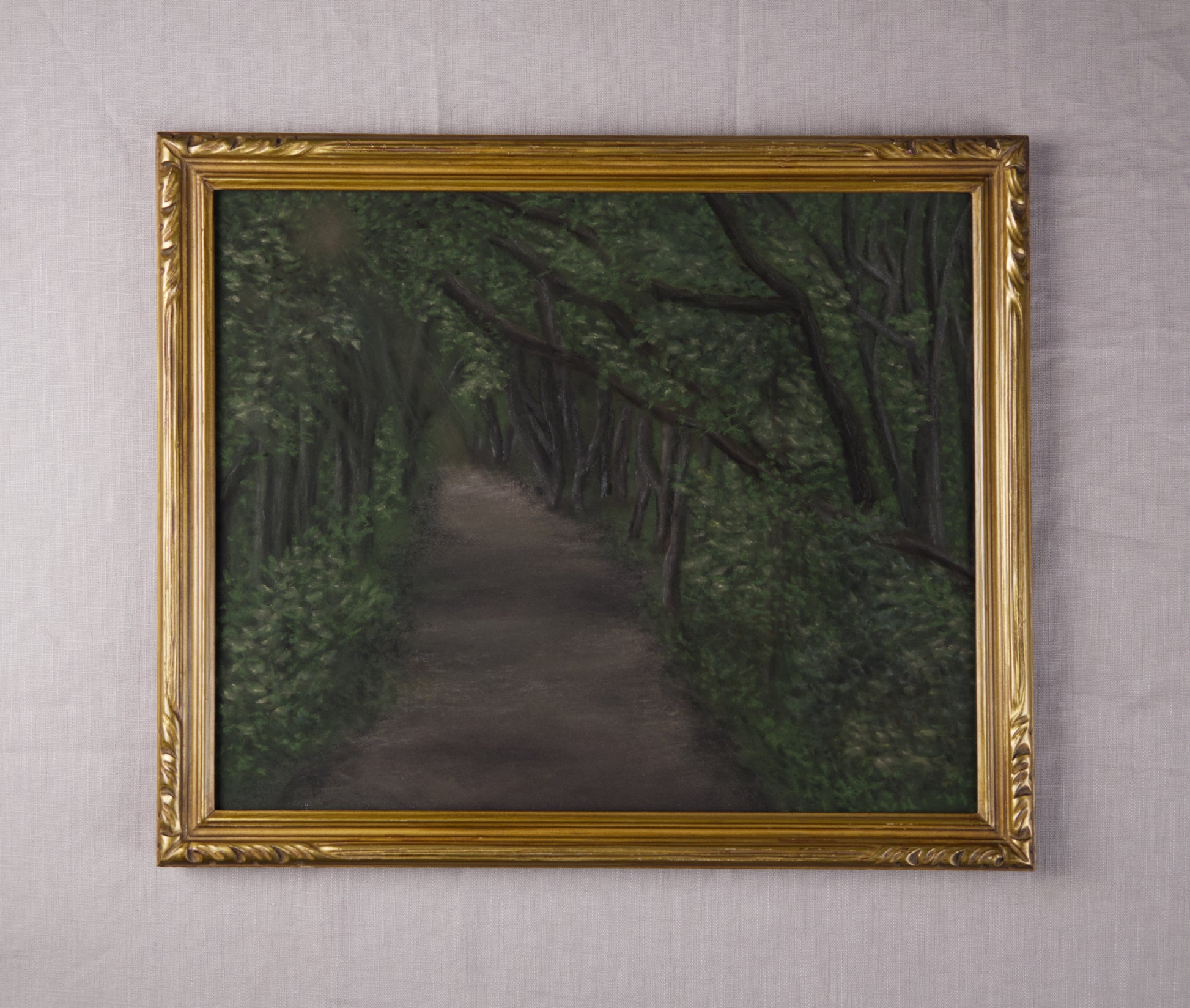 Pastel on paper in a vintage frame measuring approximately 16 x 13 ½ ". Glass included. Painting arrives wired and ready to hang. Artist signature on reverse. Signed Certificate of Authenticity included.