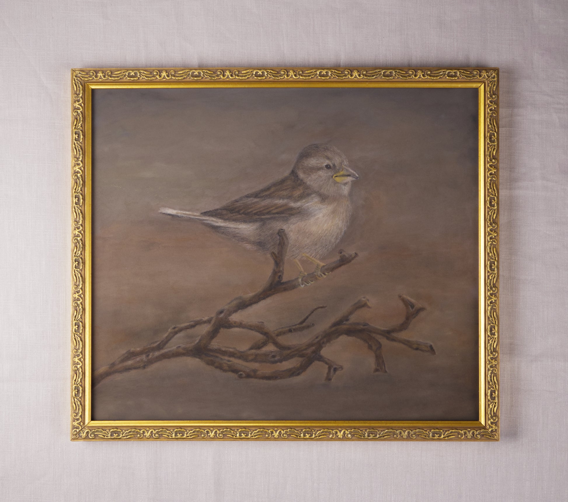 Pastel on paper in a vintage frame measuring approximately 16 ½ x 14 ¼ “. Glass included. Painting arrives wired and ready to hang. Artist signature on reverse. Signed Certificate of Authenticity included.